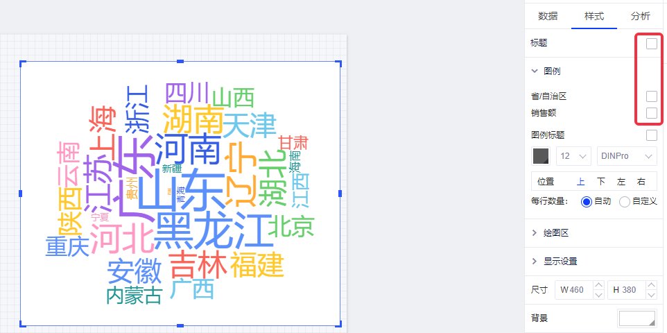(4)在样式设置中,将标题、图例隐藏,词云图制作完成。