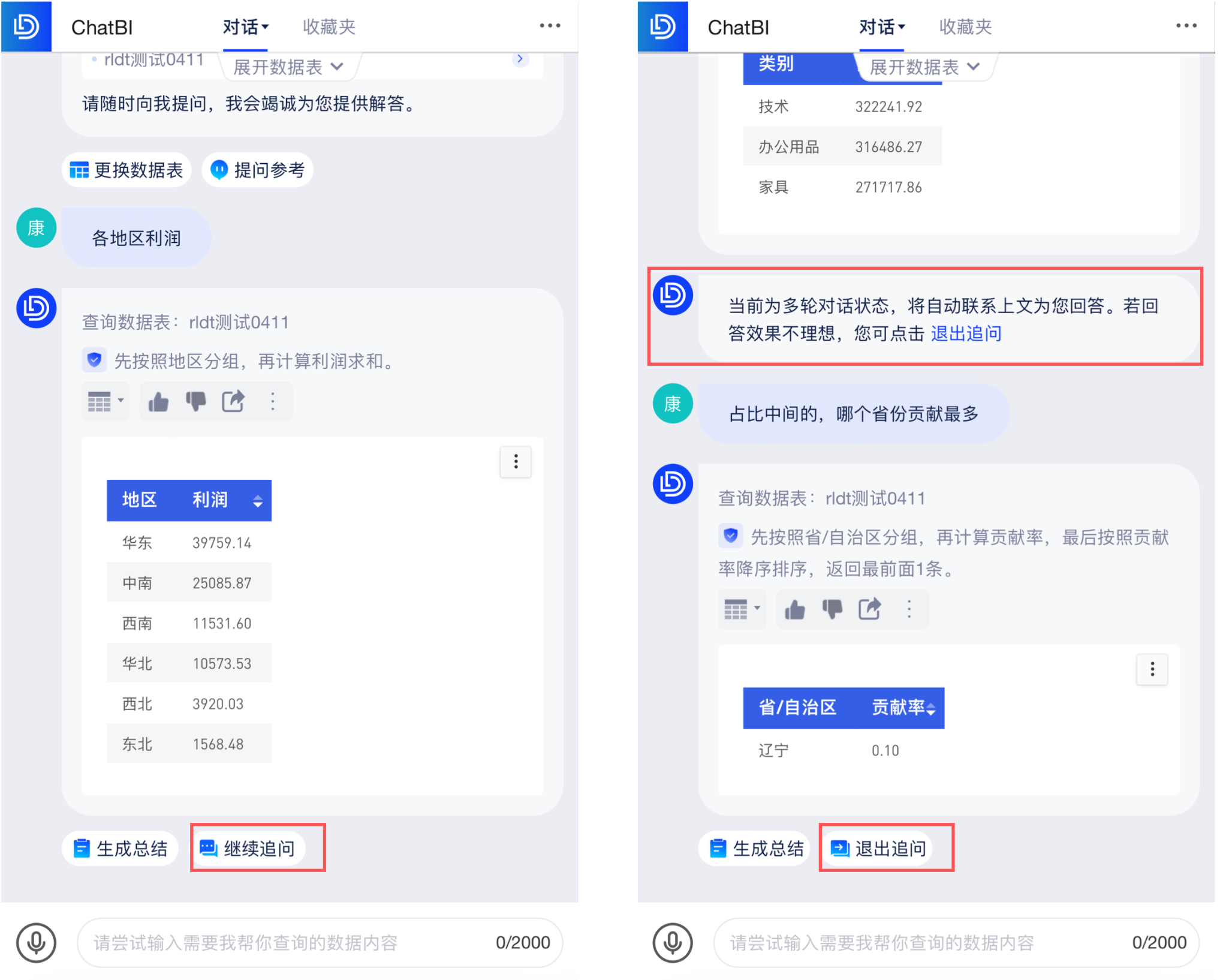 (1)点击「继续追问」按钮,则进入多轮对话状态,自动联系上下文内容为您回答